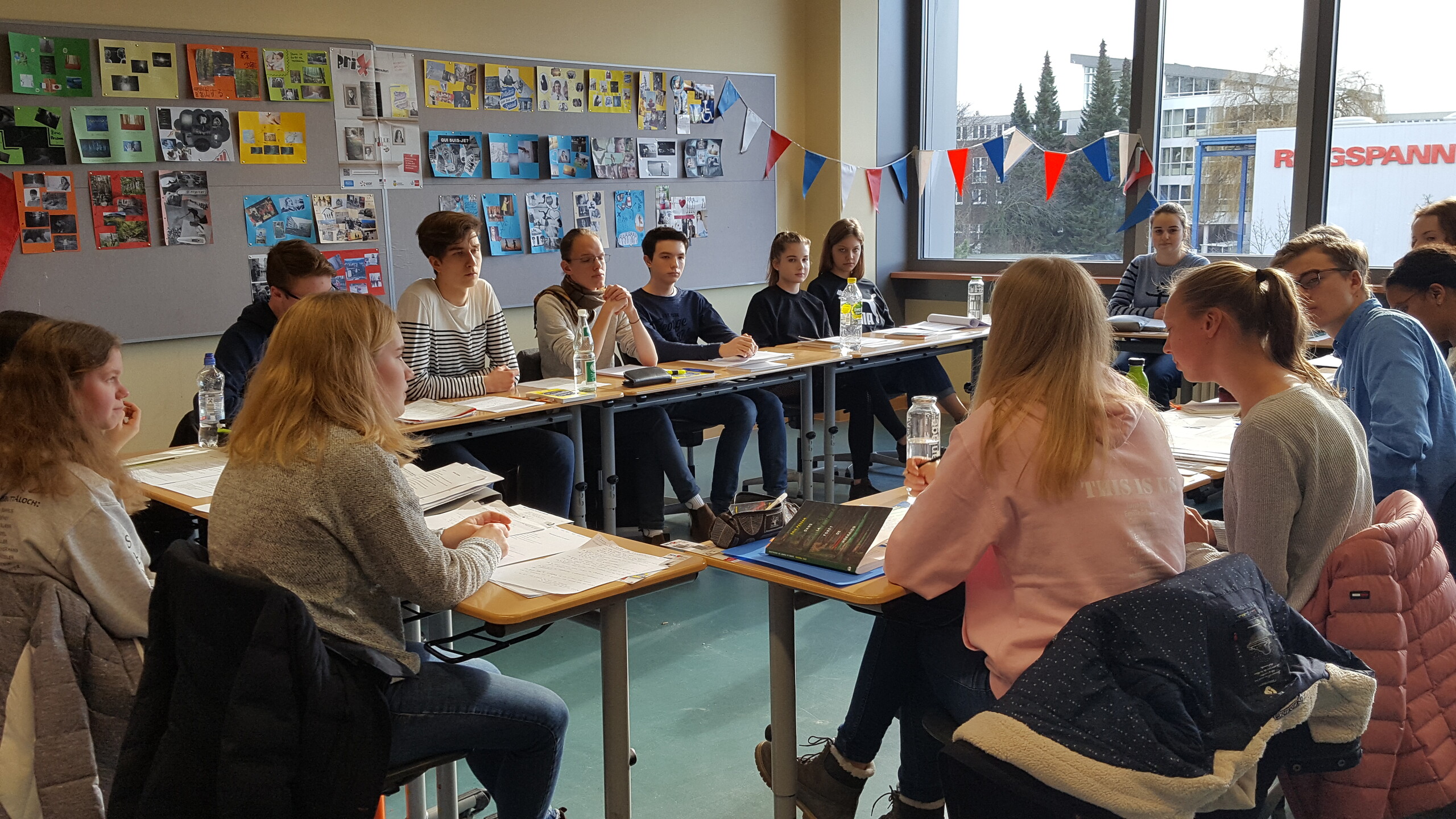 Impressionen SchulhofTeilnahme am Wettbewerb "Jugend debattiert"Bewegte Schule in der PauseBewegte Schule in der PauseKunst-Unterricht an der HUSKunst-Unterricht an der HUSDiskussionsrunde im Französisch-UnterrichtBuchvorstellung in FranzösischHandlungsorientierter MathematikunterrichtSpanischunterrichtDrei Schülerinnen in der EingangshalleInternationale Beziehungen an der HUSSchulgottesdienst