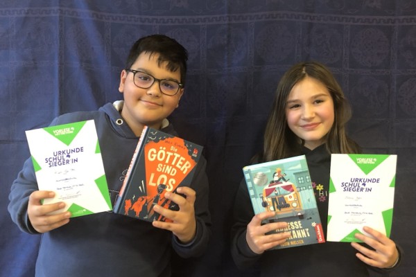 Julian (6a) und Paul (6c) gewinnen den Vorlesewettbewerb 2021