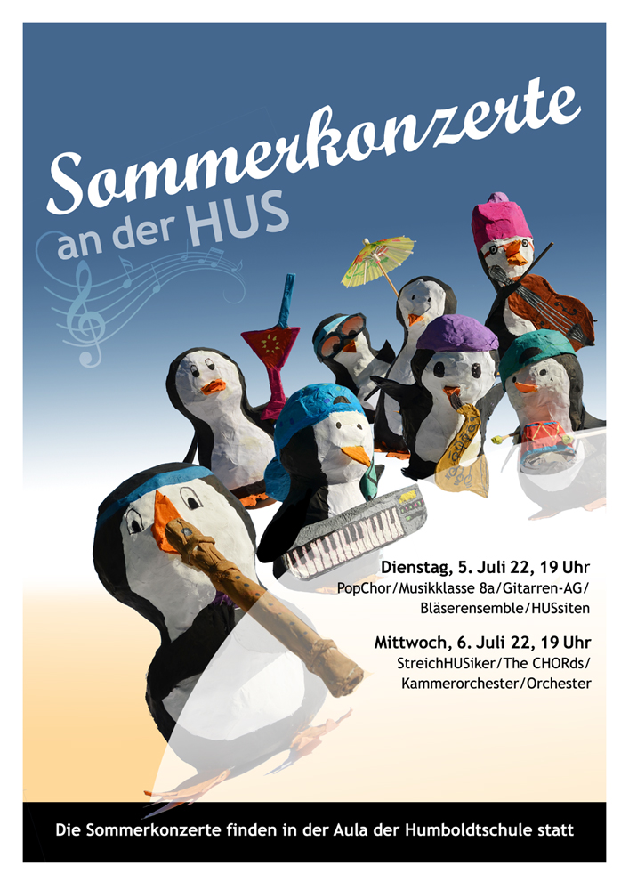 Bei den Konzerten treten zusammen über 250 musikbegeisterte Schülerinnen und Schüler des Gymnasiums mit musikalischem Schwerpunkt unter der Leitung ihrer Musiklehrerinnen und -lehrer auf. Am Dienstag stehen der Popchor der Klassen 5 bis 7, die Musikklasse 8, die Gitarren-AG, das Bläserensemble der Klassen 5 bis 7 sowie die Big Band „Die HUSsiten“ auf der Bühne; am Mittwoch folgen die „StreichHUSiker“ der Klassen 5-7, der Chor „The CHORds“ der Klassen 8 bis 12 sowie das Kammerorchester und das Orchester der Humboldtschule.