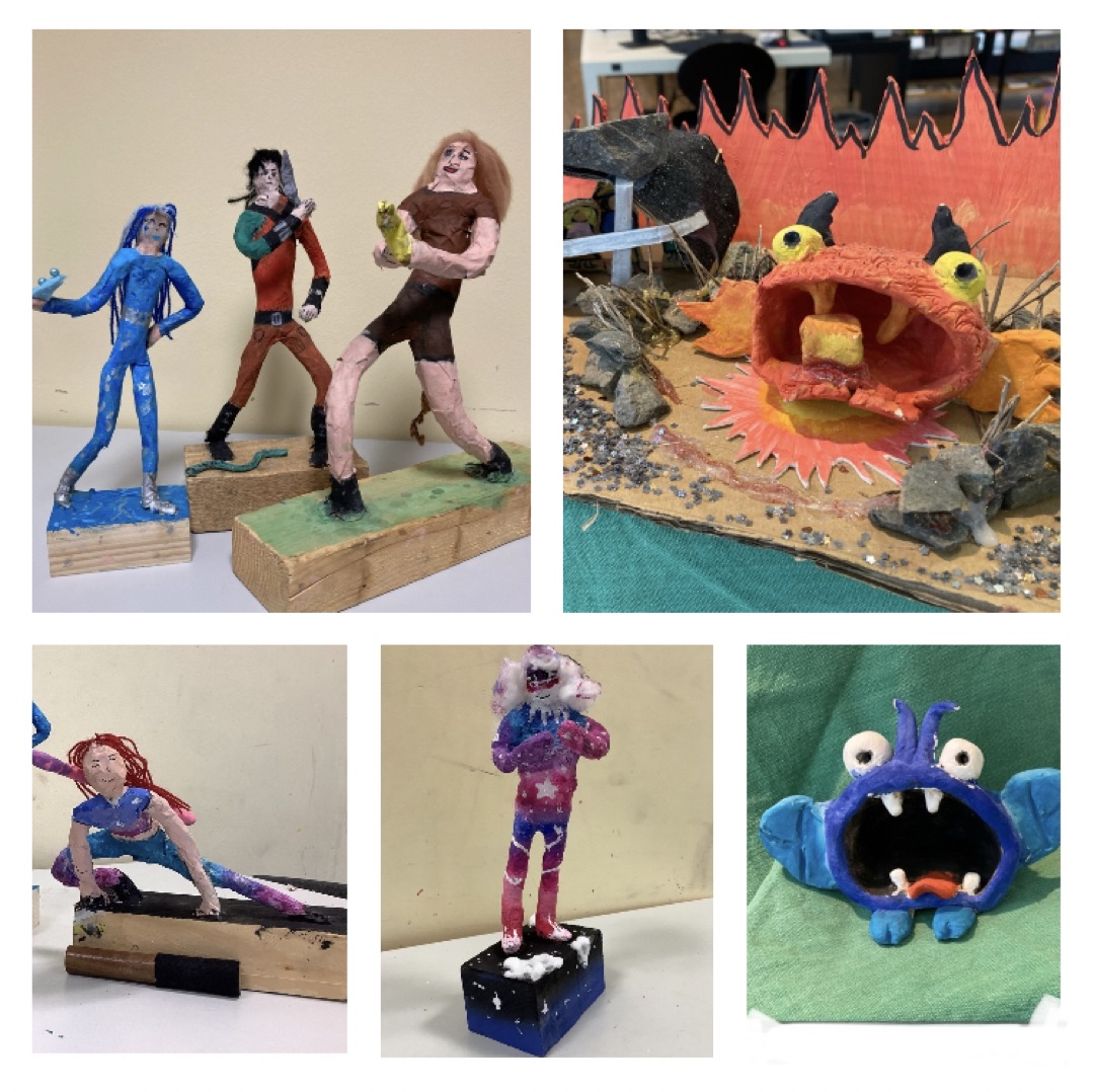 Im Kunstunterricht der Humboldtschule wurde in den letzten Wochen viel modelliert und geformt. Aus Pappmaché, Ton und Draht entstanden unter Anleitung von Studienrat Thomas Böhm fantastische Wesen, wie Superheld*innen und Drachenbabys.