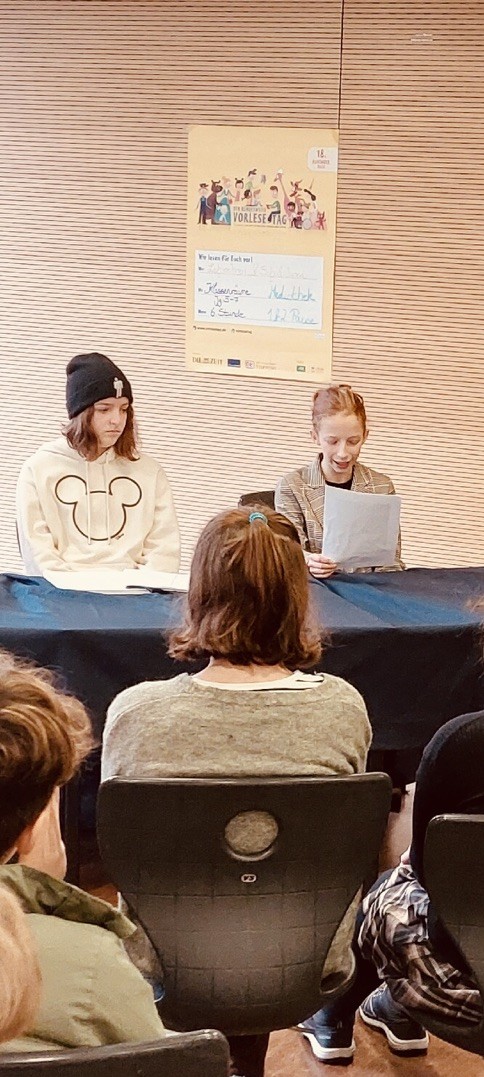 Bewährt hat sich in den letzten sechs Jahren das Vorlesen in den Jahrgängen 5, 6 und 7 in der sechsten Schulstunde. Ob nun im Sprachenunterricht oder in den Naturwissenschaften, ja selbst im Sportunterricht fand sich da Zeit zum Lesen. In vielen Klassen haben die Lehrer:innen aktuelle Jugendbücher mitgebracht, aber auch Schüler:nnen haben Bücher vorgeschlagen und daraus vorgelesen.