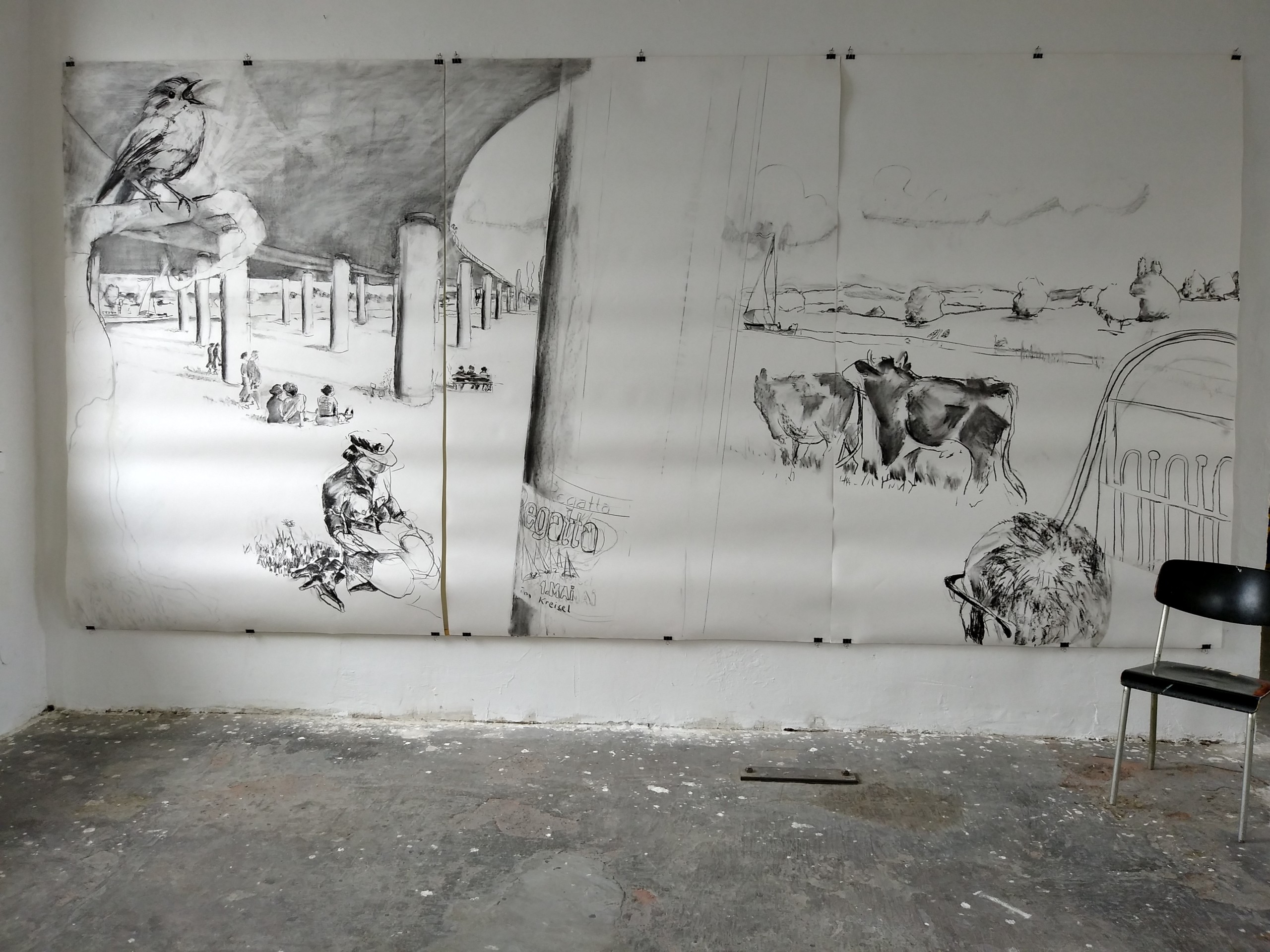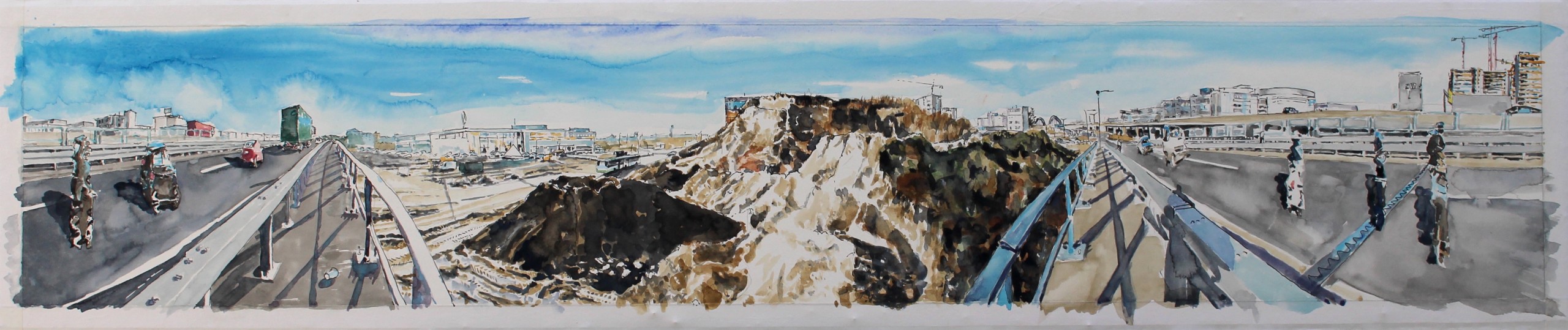 Hayko Spittel, Kunstlehrer an der Humboldtschule, ist selbst als Künstler aktiv und beschäftigt sich seit über zwanzig Jahren künstlerisch mit dem Phänomen des Kaiserlei-Kreisels zwischen Frankfurt und Offenbach. Ein kleiner Teil seiner Arbeiten wird aktuell im Stadtlabor im Historischen Museum Frankfurt gezeigt.