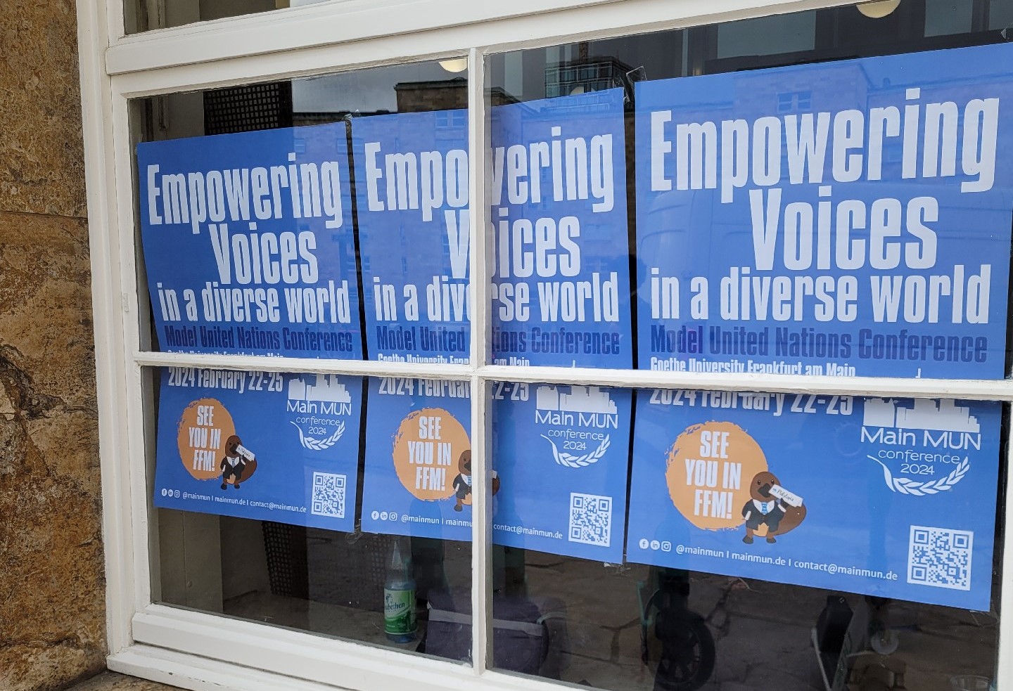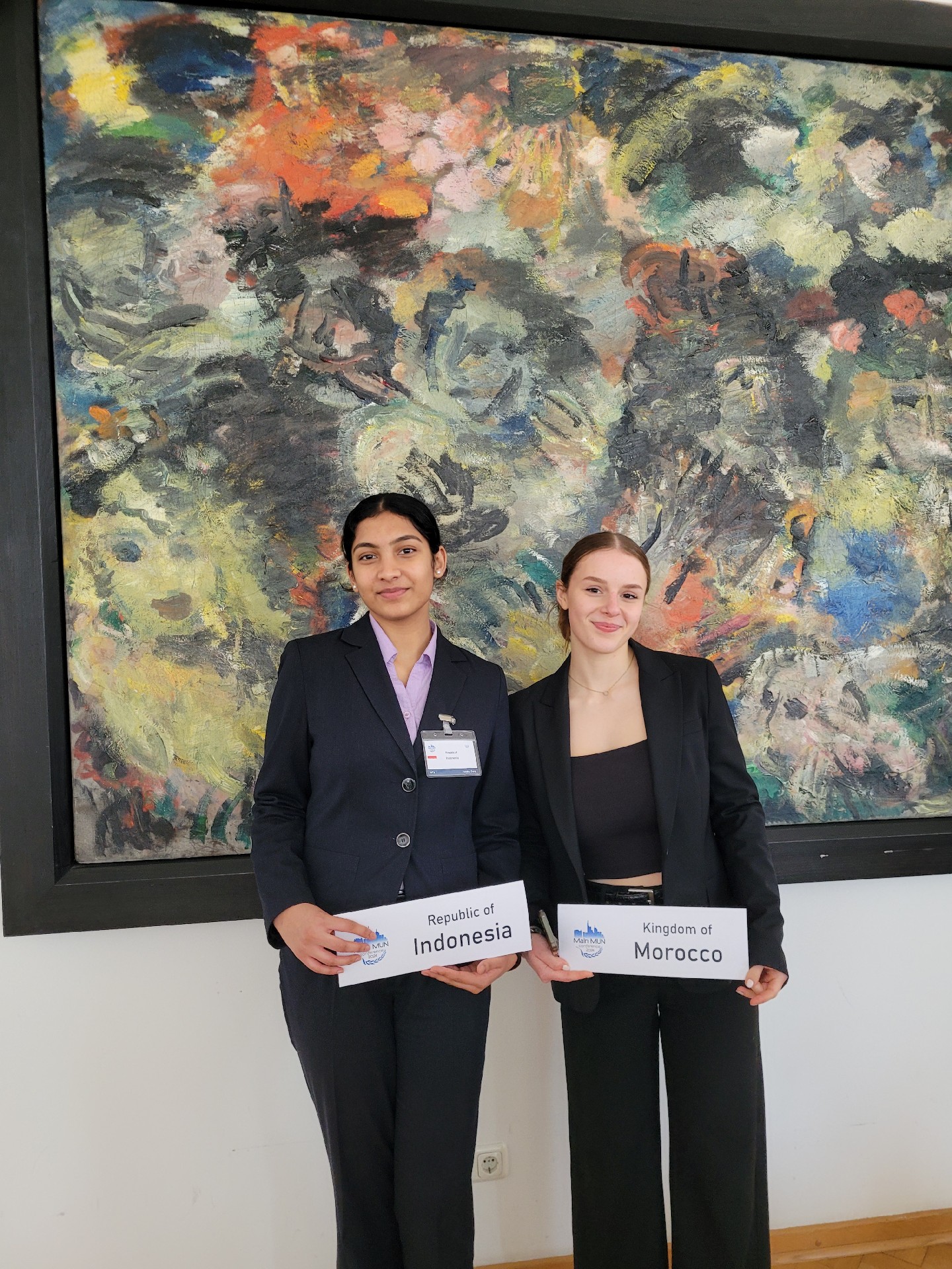 Die Schülerinnen und Schüler Lilia, Faiyha, Cosima und Julian haben erfolgreich bei der Model United Nations Konferenz vom 22.-25. Februar in Frankfurt teilgenommen. Zum zweiten Mal arbeiteten sie sich in die Sichtweisen ihrer Länder ein und repräsentierten diese in der Generalversammlung und Internationalen Atomenergie-Organisation. Ihr Fazit nach vier Tagen Konferenz: „Das wird nicht unser letztes Mal sein“.