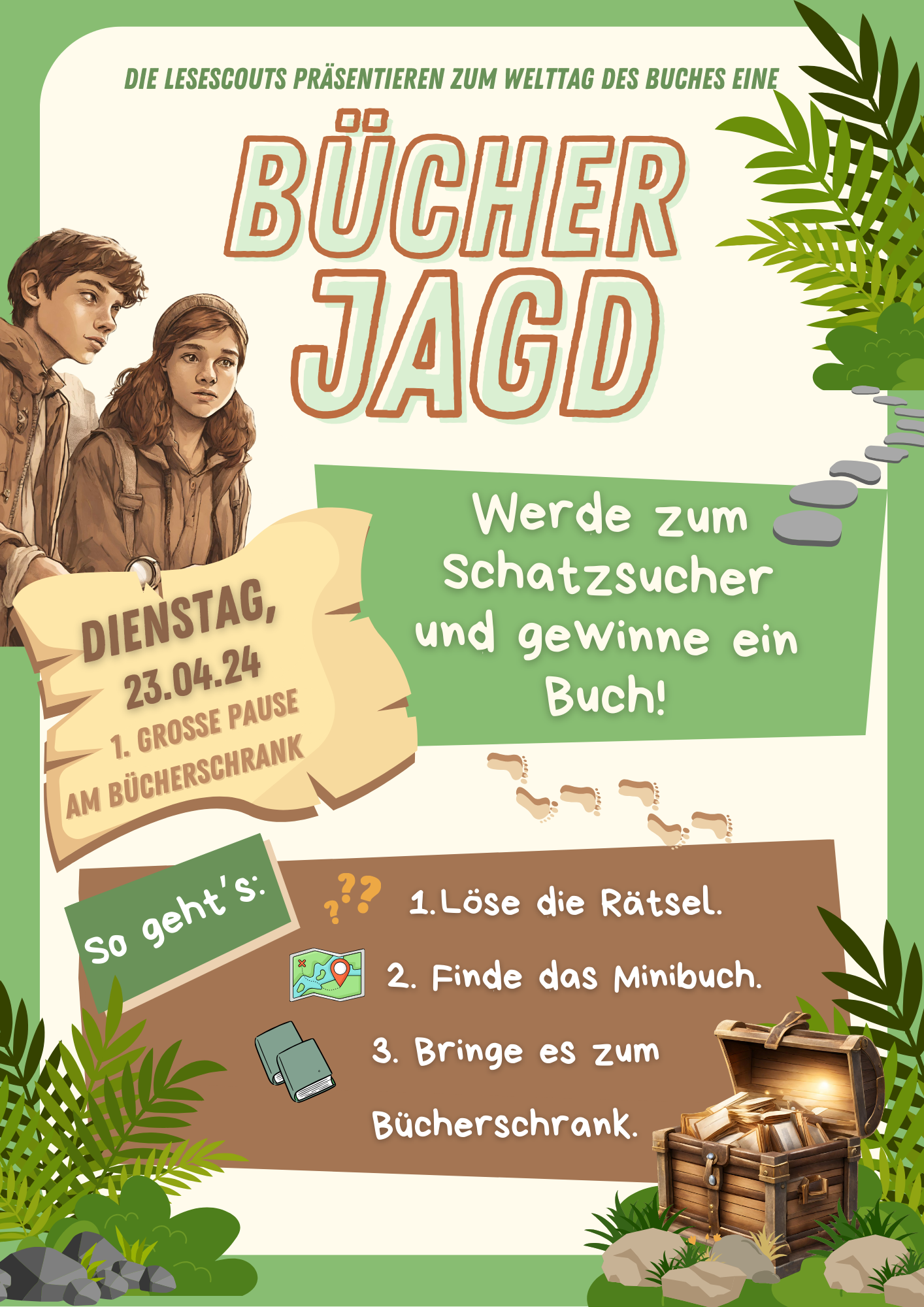 In einer aufregenden Aktion zum UNESCO Welttag des Buches am 23. April 2024 organisierte die AG Lesescouts an unserer Schule eine Bücherjagd, die die Schülerschaft dazu einlud, ihre Lese- und Rätselkompetenzen auf die Probe zu stellen.