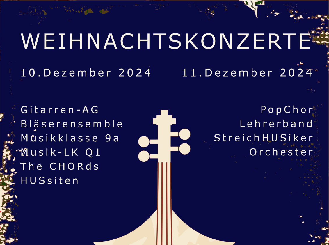 Mit zwei Weihnachtskonzerten setzen die musikalischen Arbeitsgemeinschaften und Musikklassen an der Humboldtschule Bad Homburg am Dienstag, dem 10. Dezember und am Mittwoch, dem 11. Dezember ihre traditionsreichen Konzerte vor Weihnachten fort. Der Beginn ist jeweils um 19 Uhr in der Aula der Schule. Bei den Konzerten treten über 250 Schülerinnen und Schüler des Gymnasiums mit musikalischem Schwerpunkt unter der Leitung ihrer Musikfachkräfte auf. Am Dienstag musizieren die Gitarren-AG, das Bläserensemble, die Musikklasse 9, das Q1-Ensemble des Grund-/Leistungskurses Musik, der Chor „The CHORds“ sowie die Big-Band „Die HUSsiten“. Am Mittwoch führen der „Popchor“, die Lehrerband, die StreichHUSiker sowie das große Orchester die seit September vorbereiteten Werke auf. Auf dem Programm stehen ein unterhaltsamer und besinnlicher Mix aus Klassik, Jazz, Musical, Rock und Pop. Zu dem Konzert sind alle Interessierte herzlich eingeladen. Der Eintritt ist frei.