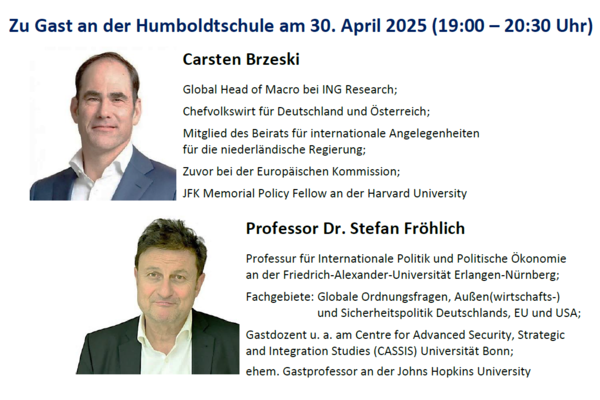 Am 30. April öffneten sich die Türe der Humboldtschule Bad Homburg zum 5. UNESCO-Diskussionsforum für Schülerinnen, Schüler und Interessenten zur Thematik „Weltwirtschaftsordnung im Wandel: Gefährdete Wohlstandsperspektiven“. Mit einem besonderen Fokus auf künftige Entwicklungen und Herausforderungen der deutschen Wirtschaft und den Veränderungen des Wohlstands.Zwei hochkarätige Experten, Herr ...22.05.2025