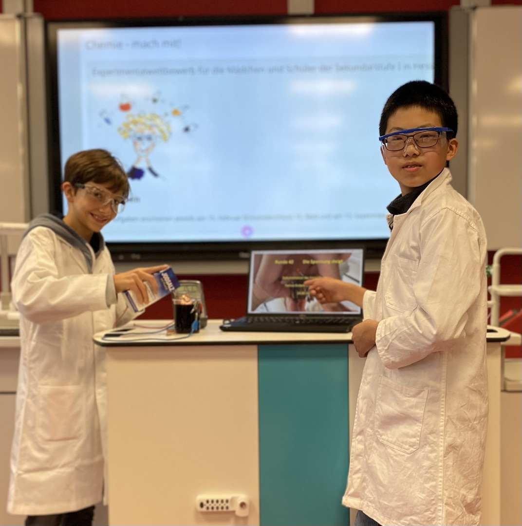| Inhalt in Stichpunkten: | Wir lernen das Experimentieren im chemischen Kontext. Inhalte/Ziele: Ziel ist das erste praktische Arbeiten mit Chemikalien beim Experimentieren, das richtige Verwenden von Apparaturen und Geräten in der Chemie sowie Lernen von Sicherheitsaspekten und dem verantwortungsvollen Umgang im Fachraum. Dabei werden sowohl die Konzentrationsfähigkeit als auch motorische Fähigkeiten gefördert. Schnupperwochen: |